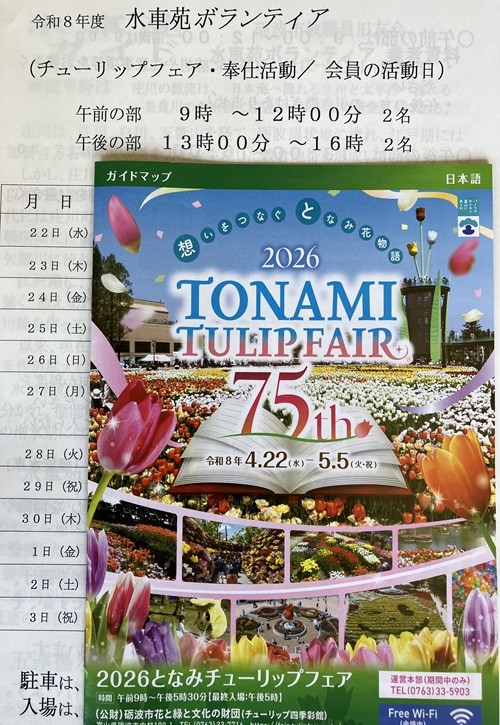 2026となみチューリップフェア水車苑ガイドボラン…